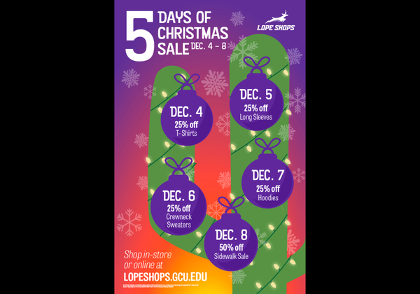 Working with two other Assistant Copywriter/Assistant Graphic Designer groups, we were tasked with developing a "5 Days of Christmas Sale" promotional campaign for the Lope Shops, Grand Canyon University's merchandise destination.